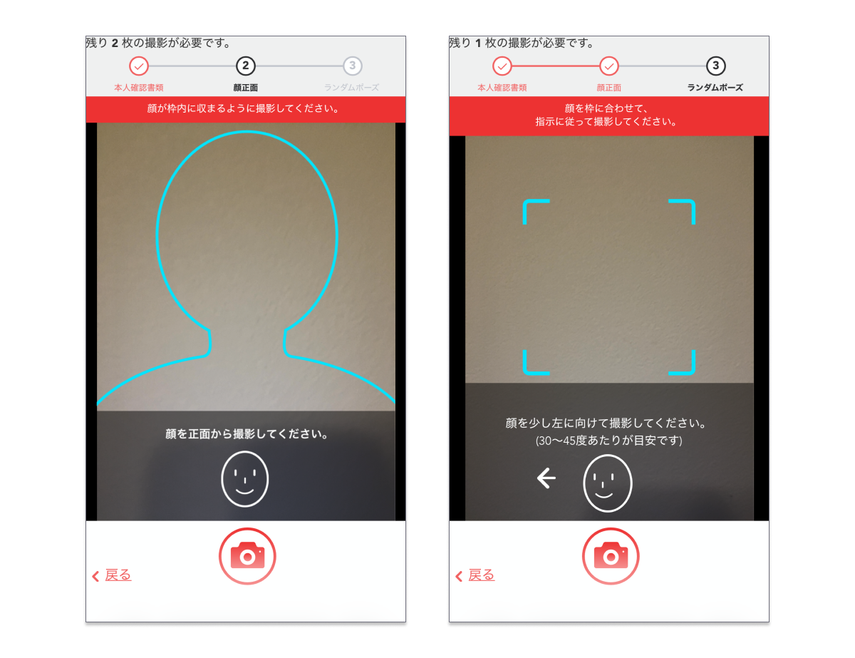 画面の指示に従い、本人確認書類と顔の撮影を行います。