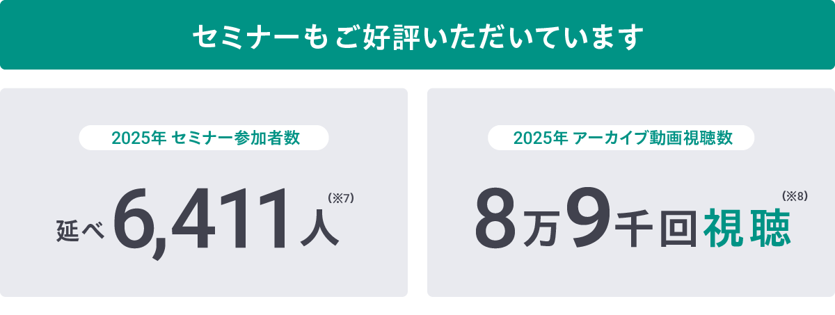 (※7)2025年1月1日~2025年12月4日に行ったオンラインセミナーにおけるセミナー毎の一意の参加者数を合計しています。