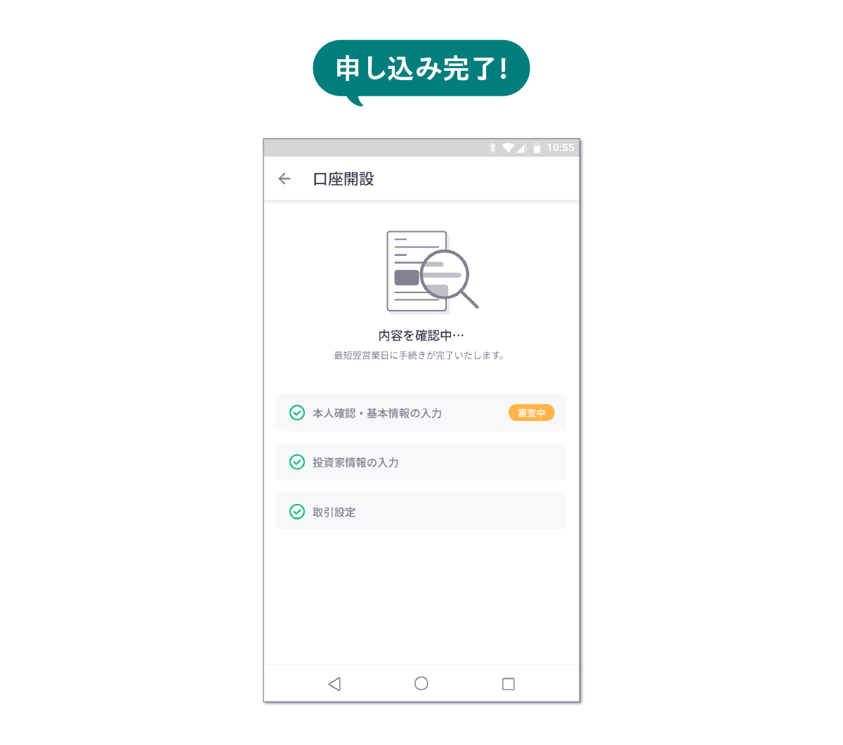 審査完了までお待ちください(最短翌営業日に審査が完了します)