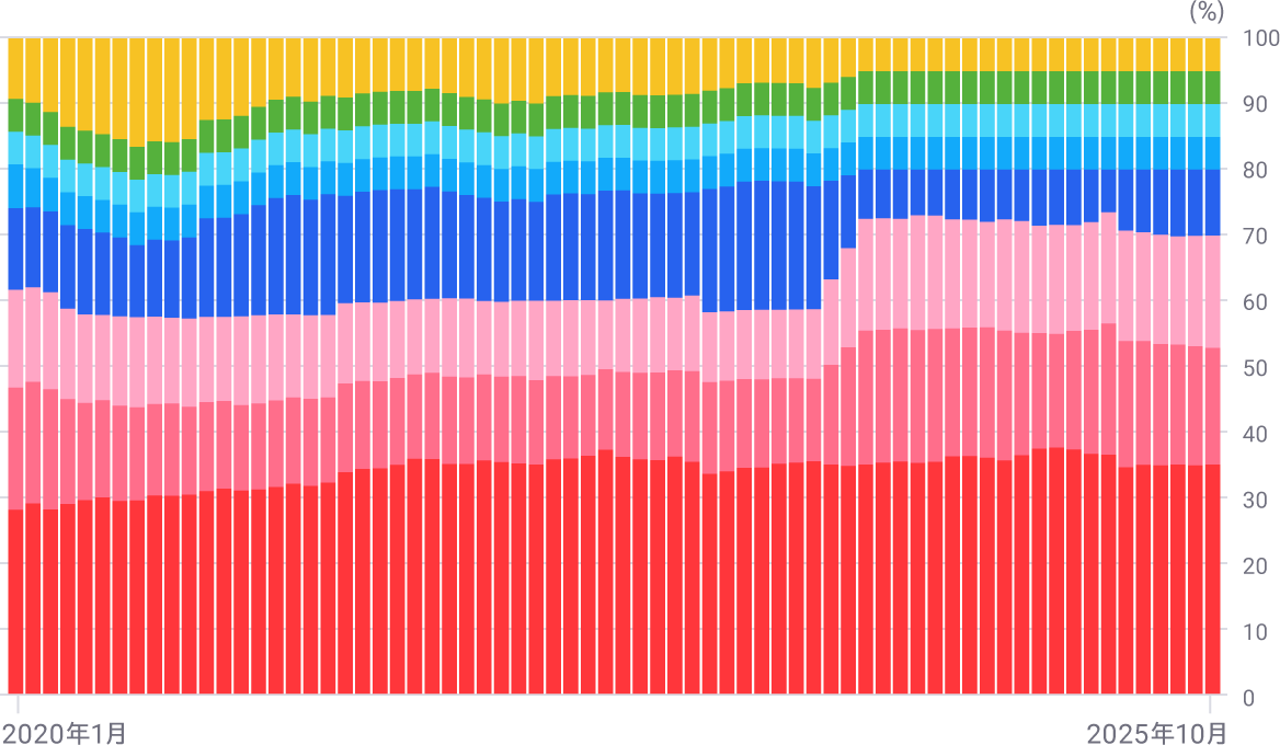 ※3 ROBOPROの投資配分の推移について:各月に適用される投資配分の変更時点(ex.2025年10月は2025年9月30日時点)の比率を示しています。2022年6月と11月、2024年11月、2025年4月は毎月の投資配分の変更とは別に、臨時で投資配分の変更を実施しています。