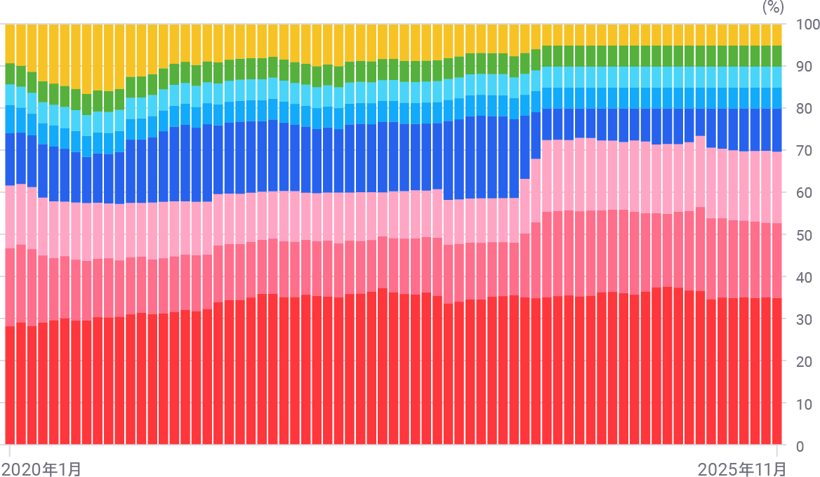 ※3 ROBOPROの投資配分の推移について:各月に適用される投資配分の変更時点(ex.2025年11月は2025年10月29日時点)の比率を示しています。2022年6月と11月、2024年11月、2025年4月は毎月の投資配分の変更とは別に、臨時で投資配分の変更を実施しています。