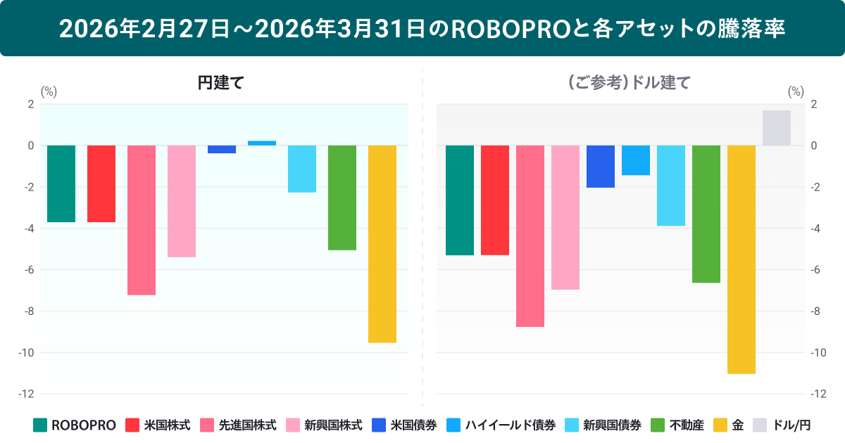 2026年3月における1か月間の実績は-3.71%となりました。以下で、同期間におけるROBOPROの運用状況をご説明します。