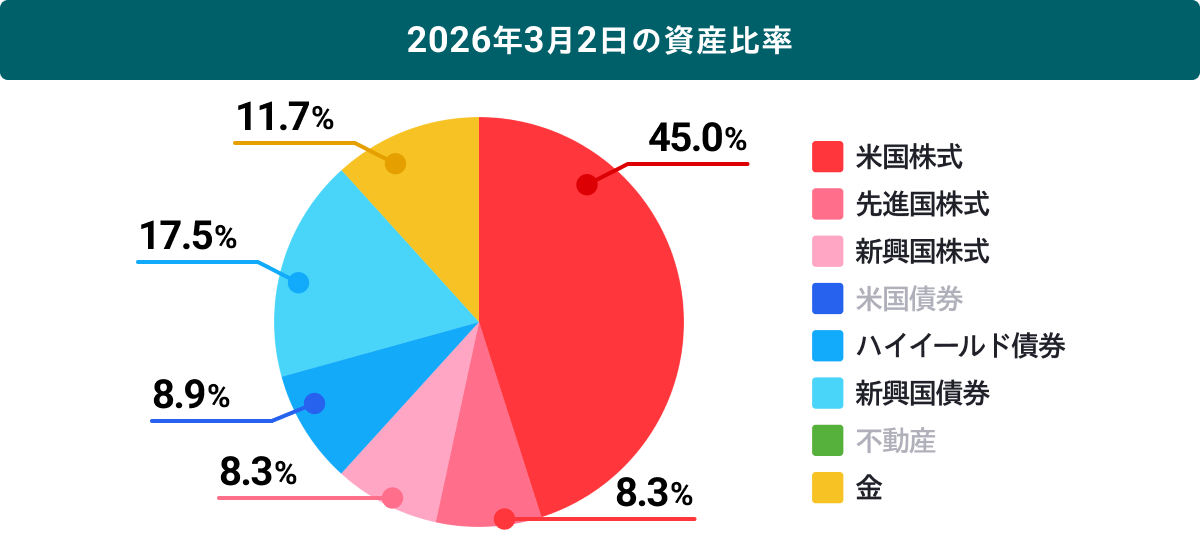 円グラフは2026年3月2日時点での投資配分です(※3月2日の注文締切時刻までに注文したお客様に適用されます)。